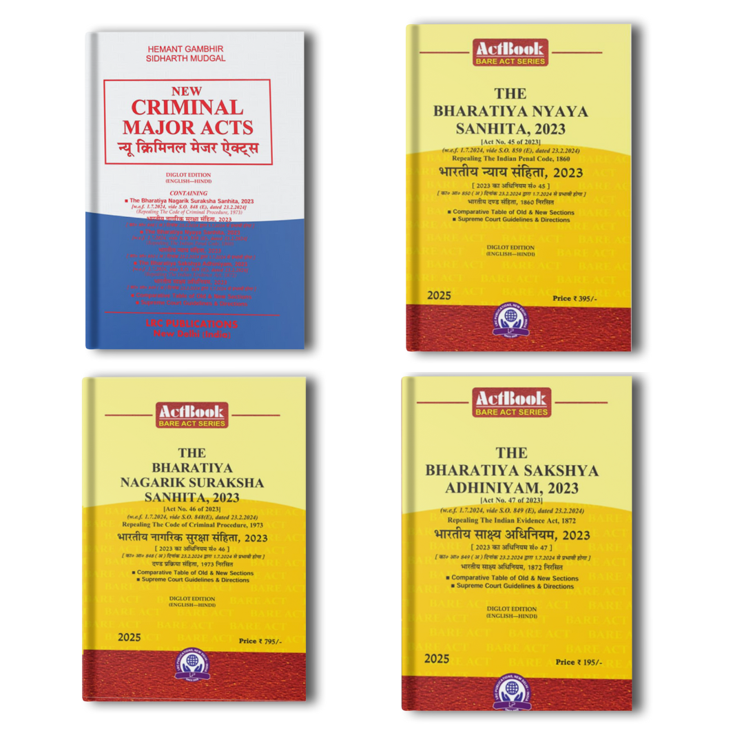न्यू क्रिमिनल मेजर एकट New Criminal Major Act + BNS, BSA, BNSS Bare Act Set (Hindi-English) Diglot Edition 2025